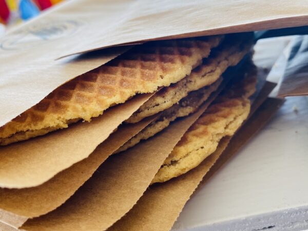 de wafels worden kort voor het inpakken gebakken en gekoeld om hem zo vers mogelijk te houden voor u.